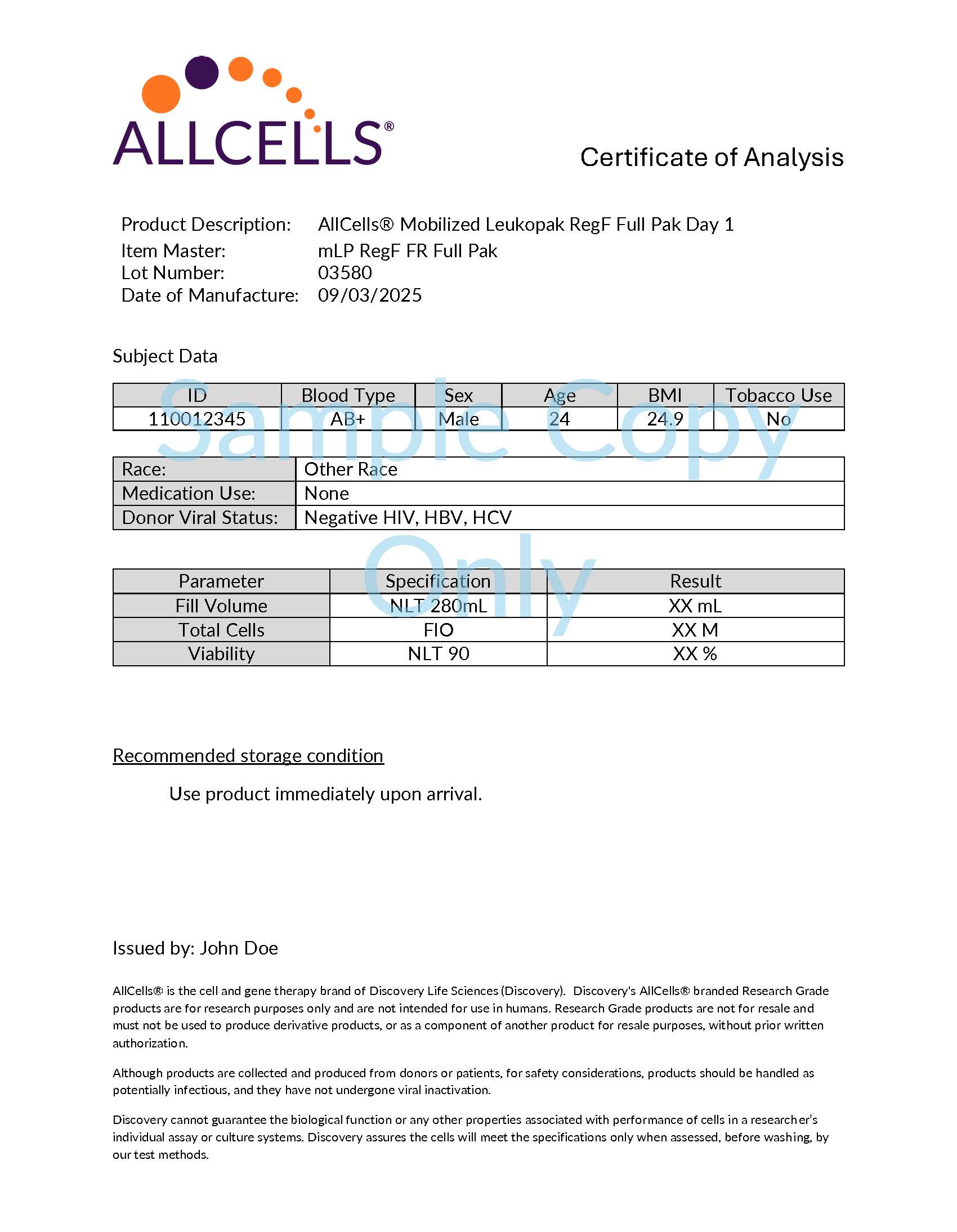 Discovery offers fresh mobilized leukopaks and cryopreserved CD34+ cells from a variety of dosing regimens. The product chart below provides detailed information on standard formats and unit sizes.